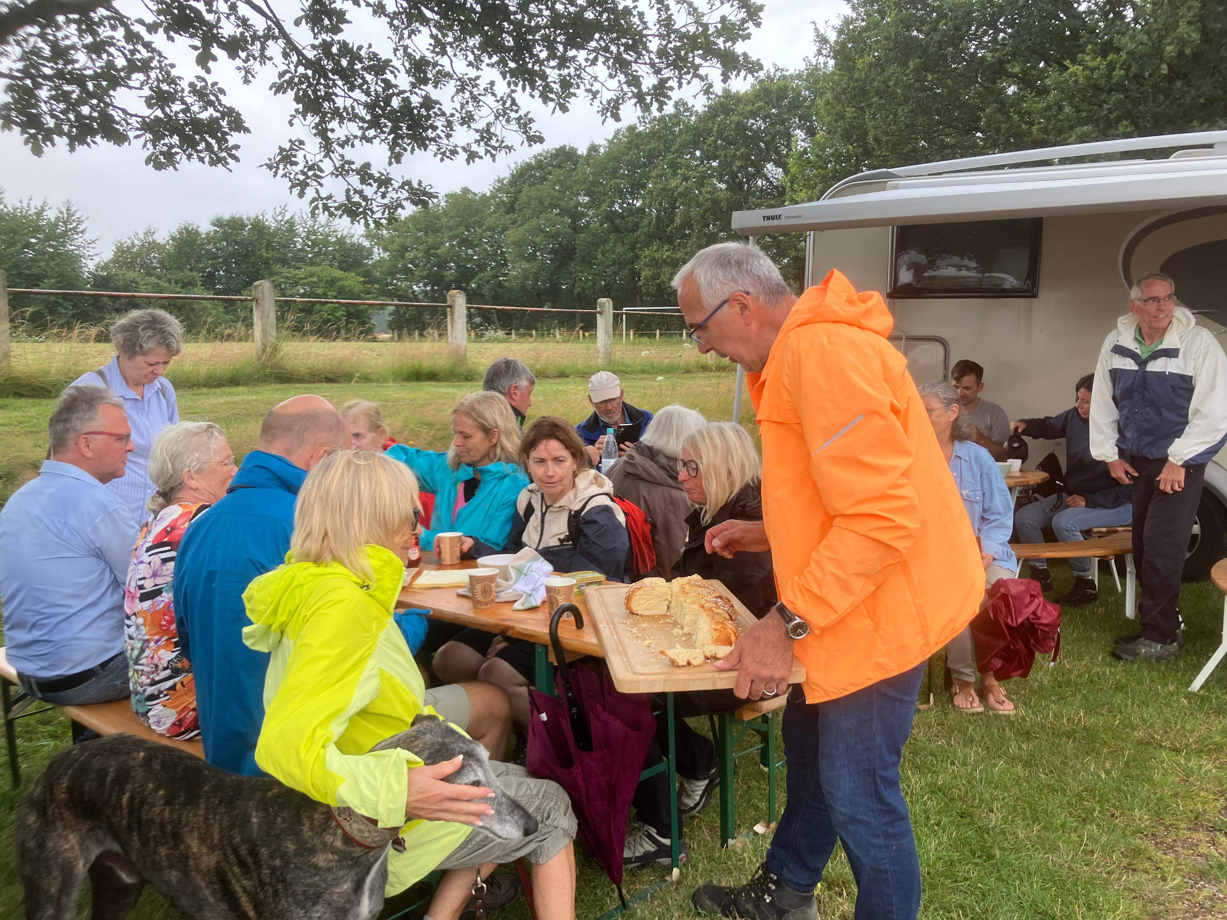 In aufgebauten Sitzgruppen konnten die Teilnehmerinnen und Teilnehmer Platz nehmen, um bei von Willi morgens gebackenem frischen „Oma-Frieda´s Hefezopf“ mit Butter und leckerer Marmelade und bei einer Tasse Kaffee eine gelungene Wanderung ausklingen zu lassen.