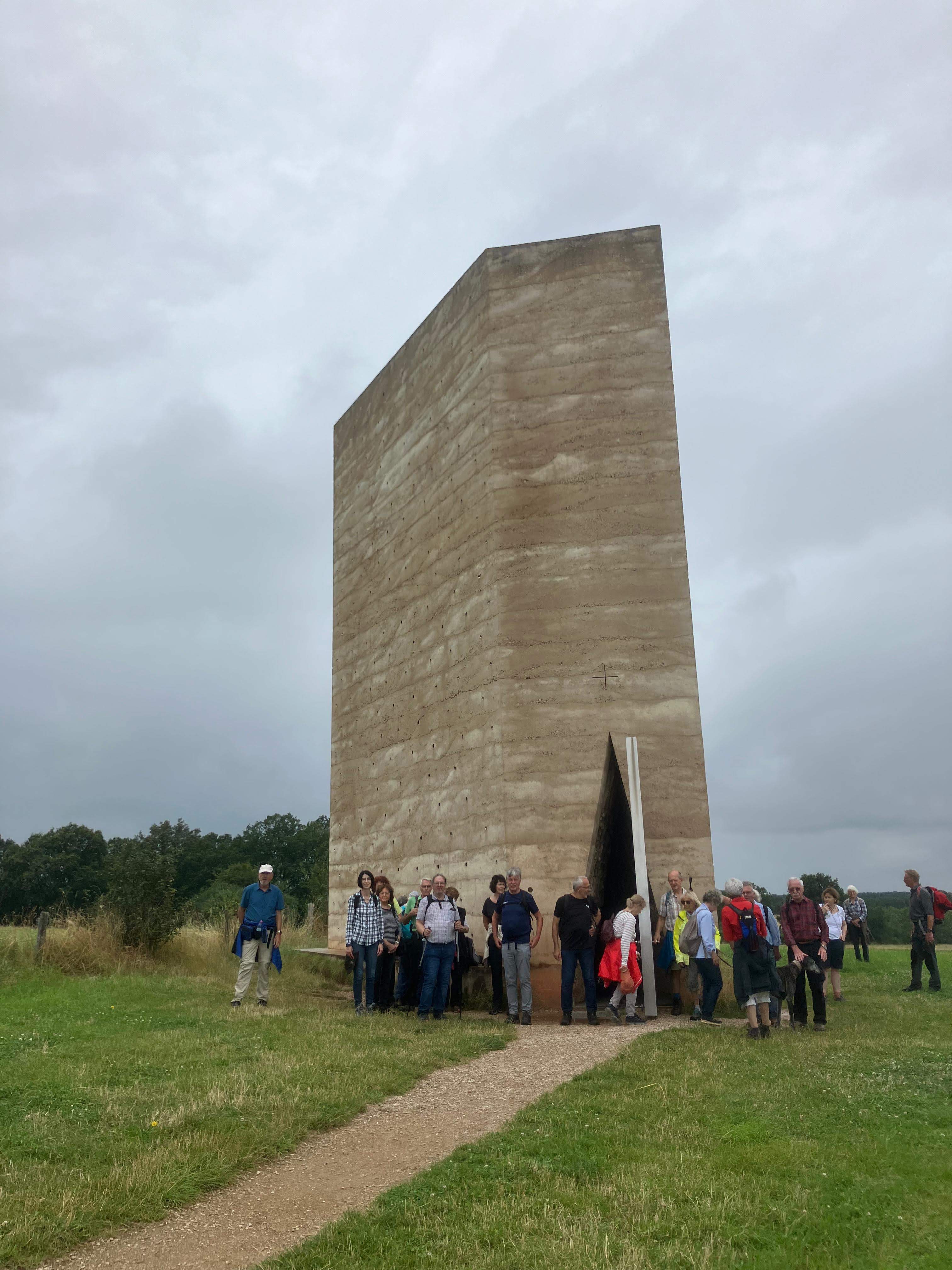 Das Regenzeug konnte bis zum Schluss in den Rucksäcken bleiben. Am Ende der Wanderung stand ein bauliches Highlight auf dem Programm, die nach den Plänen des Schweizer Star-Architekten in den Jahren 2005 bis 2007 erbaute Bruder-Klaus-Feldkapelle oberhalb von Wachendorf. Heinz